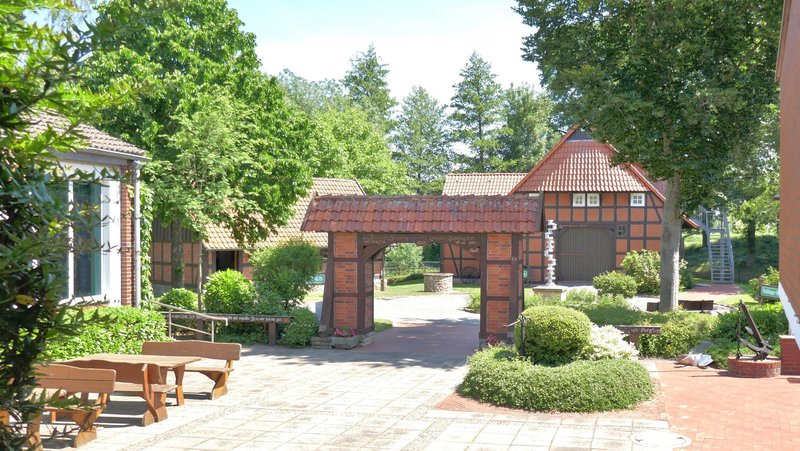 erhielt, hier werden in umgesetzten typischen Häusern der südlichen Mittelweserregion Brauchtum, Trachten und Haushaltsgerätschaften der letzten 200 Jahre gezeigt.