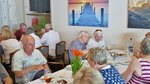 bedankte sich für die Glückwünsche und Blumen mit einer leckeren kühlen Erdbeerbowle, die sich beim anschließenden Begrüßungs-Kaffee-Trinken und beim Kuchen schnell leerte. Der Abend war zur freien