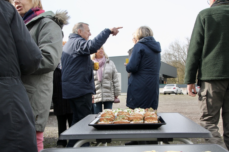 Für die anderen gab es schon gegen 17:00 Uhr zwischen den Wohnmobilen bei regnerischem (aber just jetzt trockenem) Wetter das herzliche „Willkommen“ von unseren Gastgebern Christiane u. Michael Kluck mit einem zum Wetter passenden Glühwein und „Münsterländer Häppchen“ mit käse- und vegetarischem Aufstrich und mit leckerem Griebenschmalz, dabei wurde fleißig untereinander geplauscht – man hatte sich ja auch lange nicht gesehen.