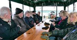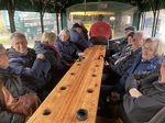 Vor der Kirche erwarteten uns dann um 12:00 Uhr wieder die beiden Kutschgespanne, mit denen es nun auf zu einer Fahrt durch die Münsterländische Parklandschaft zwischen Oelde und Stromberg ging. Am Restaurant „Waldeslust“ hieß es „Absitzen“ zum (vorbestellten) Mittagsimbiss. Da erfahrungsgemäß oftmals mitreisende Vagabunden ihre Vorabbestellung nicht mehr parat wussten, verlas Michael Kluck noch einmal die Bestellungen, so gab es keinen Streit um die leckeren Gerichte.