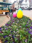 Zum Tages-Abschluss trafen wir uns kurz vor 18:00 Uhr vor dem Mobil von Christiane und Michael Kluck und überreichten ihnen als Dankeschön für die Gestaltung dieses Treffens in Oelde eine große Kiste mit Frühlingsblumen für ihren Garten, dann gingen wir wieder ins Brauerei-Restaurant „Brauund Backhaus“ zum Spanferkelbuffet bzw. Essen à la carte. Es war ein gemütlicher und geselliger Abend.