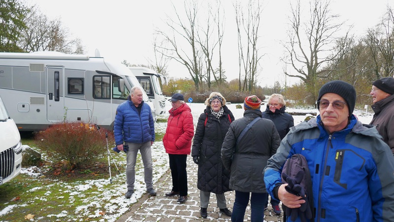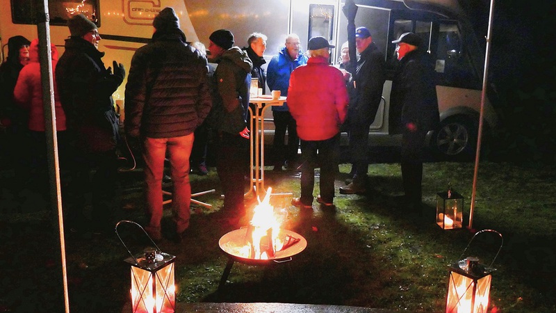 Schon am Sonntag 26.11.2023 waren die ersten Vagabunden-Mobile (Brose, Nobbe u. Thee) eingetroffen, der Rest traf bis Montagnachmittag auf dem hübsch an der Okeraue beim Stadtbad gelegenen Stellplatz ein, vereinzelnd witterungsbedingt bei Schneefall mit Verspätung. Der Platz ist relativ zentrumsnah (ca. 1,2 km), er hat 2 moderne, saubere und gut beheizte SanitärContainer, die ÖPNV-Busse fuhren 3-4x stündlich in 150 m Entfernung vom Stellplatz ab. Ab ca. 17:00 h fand dann die herzliche Begrüßung der angereisten Vagabunden statt - im Beisein der Gäste des RC Salzgitter-Wolfenbüttel, des Präsidenten Robert Löffler, der Past-Präsidentin Frau Annette Werthmann und des Präsidenten elect Jürgen Loos - und das Ganze sehr stimmungsvoll bei leichtem Schneefall mit Glühwein und (von Elfriede Nobbe) selbstgebackenem Weihnachtsgebäck, beim Schein einer Feuerschale und Laternen und Lichterketten zwischen den WoMos.