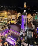 Um 18:00 h warteten wir dann zusammen mit einer großen Menschenmenge vorm Braunschweiger Rathaus auf die Eröffnung des Braunschweiger Weihnachtsmarktes: Pünktlich legte der Braunschweiger Bürgermeister den Lichtschalter um, die Marktbuden waren plötzlich alle beleuchtet, Musik erklang, der Glühwein wurde ausgeschenkt, es war nun ein Riesentrubel – was für ein Erlebnis! Um 18:30 h trafen wir uns wieder mit dem Stadtführer Herrn Wenzel-Becker am Rathaus, er führte die Gruppe nun 162 Stufen hoch auf den Rathausturm – ein einmalige Gelegenheit, den Trubel des Weihnachtsmarktes von oben zu beobachten.