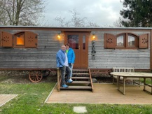 Rüdiger und Chrissy haben sich einen historischen Wohnwagen gemietet. Ihr Womo steht in der Werkstatt. Günther und Frauke Hohenstein mussten kurzfristig absagen, da sie mit einem