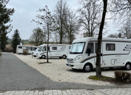 Danach habe ich mich fertig gemacht und mir im Hofladen einen Cappuccino besorgt. Die anderen Freunde sind auch schon wieder auf den Beinen. Die Stellplätze haben alles am Platz. Sogar den Ausguss für die Chemikalientoilette.