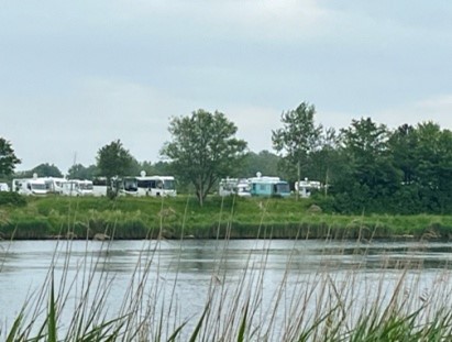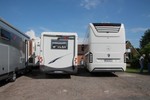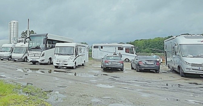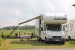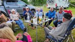 Zur Überraschung war die zugewiesene Wiese sehr stabil und riesig groß. Jeder hat sehr viel Platz und das Wetter besserte sich auch zusehends. Nur der große Morelo ist mit seinen Hubstützen kräftig eingesunken und musste umgestellt werden. Also gleich mal die Fahrräder und die Möbel raus. Ein schöner Tag geht ganz ruhig zu Ende.