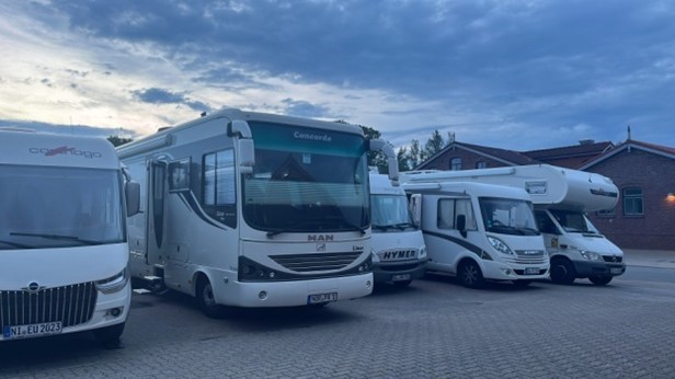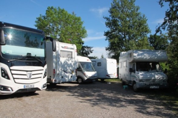 Das sahen einige von uns nicht so und stellten sich gleich nebendran auf den Stellplatz. Prima! Nun haben wir alle Platz. Ich erreichte den Parkplatz um 15 Uhr – gerade rechtzeitig, um noch eine Lücke zu finden.