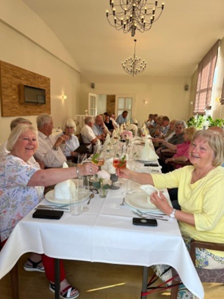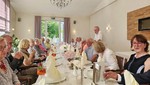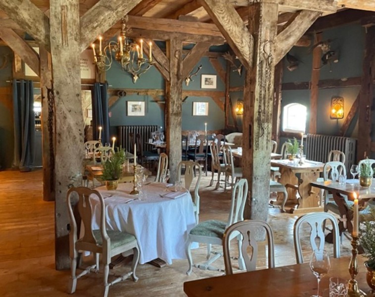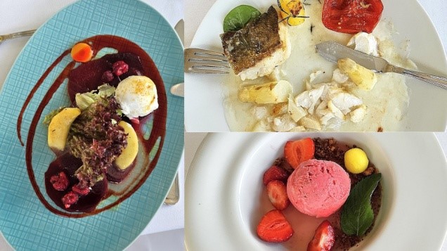 Es steht unter der Führung des Betreibers Alexander Graf zu Reventlow. Das neuste Projekt wird ein luxuriöser Wohnmobilstellplatz mit Hotelanlage namens Dorotheenpark. Er liegt etwas vom Gut entfernt und soll 2025 eröffnet werden. Das ist allerdings ein recht sportliches Unterfangen, da noch nicht mal alle Baugenehmigen vorliegen. Kurzer Kommentar von Frau Blümel: man muss Ziele haben. Wir zweifeln aber auch nicht einen Moment daran, dass diese engagierten Menschen es nicht vollbringen können. Die Führung war so spannend, dass ich völlig vergaß mitzuschreiben. Ich war von der jungen Frau total gefesselt. Gleichzeitig war ich auch betrübt. Dieses ist nun die letzte Station unserer wunderbaren Tour. Für mich könnte es immer so weiter gehen. Doch nun genießen wir noch das Überraschungsmenü „Nach Gutsherren Art“ in den wunderschön gestalteten Restaurant.