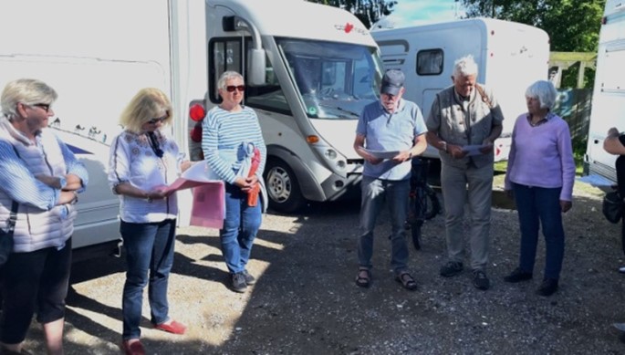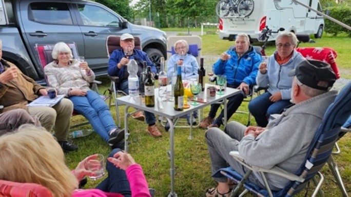 Um 16:00 Uhr war großes Treffen vor dem Wohnmobil von Bärbel und Wolfgang.
