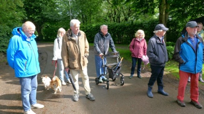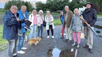 Dort standen bereits die meisten von uns dicht gedrängt gegenüber der Gaststätte Leesch. Ich glaube, dass es mit Wolfgangs Plan nicht so wirklich hingehauen hat. Aber jeder hat einen Platz gefunden.