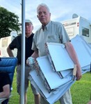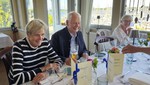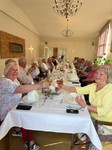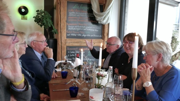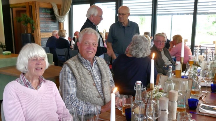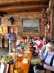 Die Schätzung hat zunächste die Eheleute Ahrens gewonnen und nach erneuter Rechnung waren es doch Eheleute Hohenstein. Da war die Flasche aber schon geköpft. Manchmal können Rechenfehler fatale Folgen haben. Meine Aufgabe lag darin, eine sehr nette Karte von Eva und Henning vorzulesen, worauf sich die Beiden für die schöne Fahrt bedankten und allen weiterhin viele gute Reisen und Gesundheit wünschten. Auch Karl-Heinz und Veronika ließen es sich nicht nehmen, sich bei allen für die nette Tour zu bedanken. Sie hätten sich sehr aufgenommen gefühlt aber müssten leider morgen wieder nach Hause fahren, um Arzttermine wahrzunehmen. Norbert gab noch ein paar wichtige Richtigstellungen zur Schlei dar. Danach trafen unsere bestellten Pizzen ein und es gab ein rustikales Essen mit vielen lustigen Gesprächen.