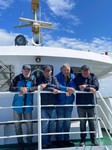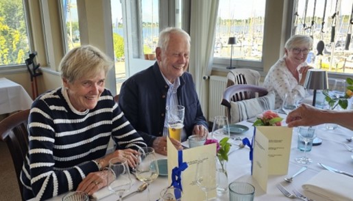 Hier gab es super leckere Fischbrötchen. Dabei begrüßte Wolfgang alle Teilnehmer/innen und erklärte uns die nächsten Ereignisse.