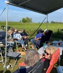 Vorbereitung ist doch alles. Somit ging es heute um 9:00 Uhr recht schnell von meinem Zwischenstopp auf dem SP in Heidenau los nach Hörsten. Die Strecke durch den Elbtunnel war zwar zähflüssig, aber gut zu machen und so war ich nach ca. 2 Stunden Fahrt in Hörsten bei Rendsburg am Nord-Ostsee Kanal. Hier wurde ich gleich herzlich von Bärbel und Wolfgang und Evelyn und Michael begrüßt. Einen Platz konnte ich mir frei aussuchen und entschied mich gleich für den ersten, mit Blick auf den Nord-Ostseekanal. Hinter uns brummen die Motoren der kleinen Sportflugzeuge. Nach und nach trudeln mit einem großen Hallo“ die restlichen Teilnehmer ein. Wie habe ich mich doch auf diesen Augenblick gefreut!